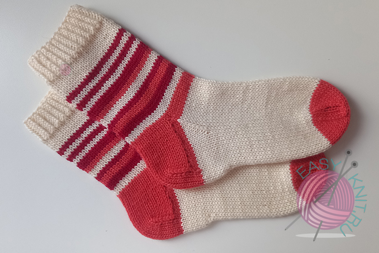 Носки из полушерстяной пряжи стали первой готовой работой месяца, вязала торопилась, мне нужно было связать их до 12 декабря, чтобы снять отчетное видео для проекта «Носочная коробочка 5». Пряжа была в остатках, решила вязать паголенок полосками, всего 3 цвета. Нить тонкая и я вязала в 9 сложений, спицы использовала 3 мм.