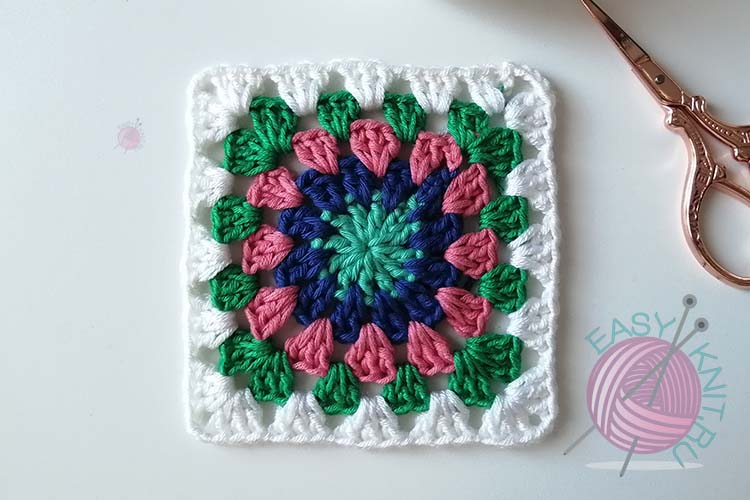 Бабушкин квадрат крючком пошагово — вязание красивого мотива для кардигана с фото