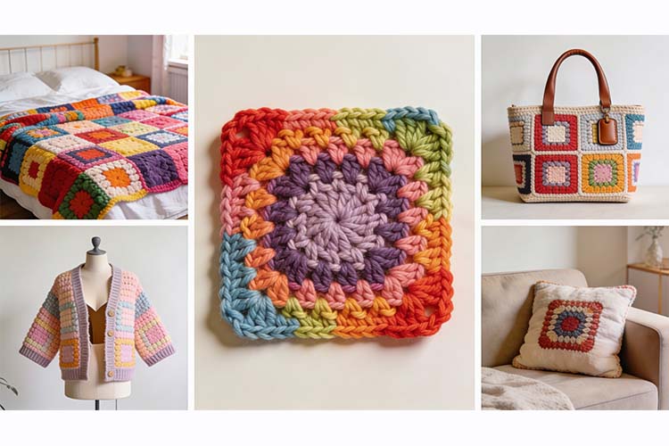 В сочетании разных текстур и цветовых схем бабушкин квадрат становится бесконечным источником вдохновения для вязальщиц. Его популярность не угасает уже десятилетия — от классических деревенских пледов до современных дизайнерских вещей.