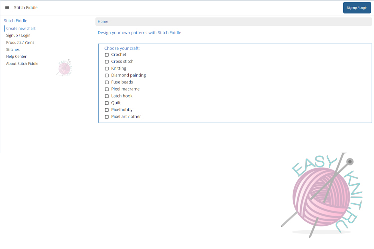 StitchFiddle — международный онлайн‑сервис для создания схем не только для вязания спицами, но и для крючка, жаккарда и вышивки. В бесплатной версии уже можно рисовать цветные и символьные схемы, задавать размер сетки и скачивать результат в виде картинки или PDF.