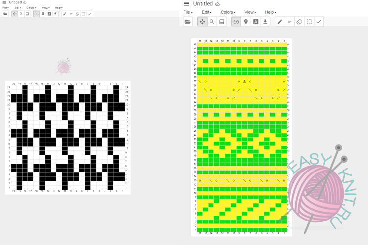StitchFiddle особенно выручает, когда нужно придумать или аккуратно оформить сложный узор: можно сразу увидеть, как будет выглядеть рисунок целиком, быстро подправить раппорт и сохранить несколько вариантов.