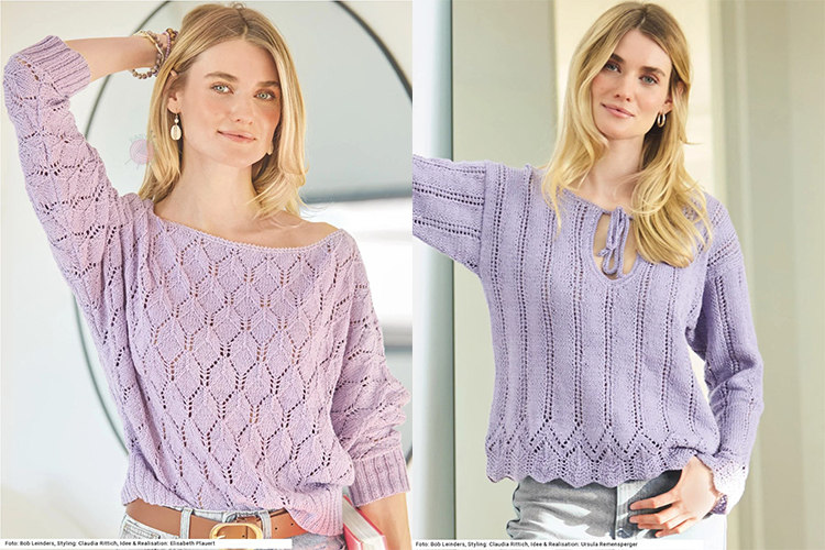 Пуловер в оттенке лаванды с простым силуэтом и акцентом на цвет и фактуру. В описании подчёркивается сочетание «лавандовый + деним» как один из актуальных образов сезона, так что этот свитер можно смело назвать моделью «на каждый день».