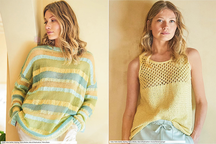 Девиз выпуска — «Maschenleicht durch den Sommer»: воздушный, игривый, прозрачный трикотаж для тёплых дней и прохладных вечеров. В номере много белого и светлых пастельных оттенков, open‑knit‑структур, сетчатых узоров и вязаных крючком вещей; крои близки к фигуре, но не обтягивают, чтобы к коже свободно поступал воздух. Журнал рассчитан и на начинающих, и на опытных вязальщиц: есть простые модели и более сложные ажуры, инструкции даны достаточно ясно, чтобы можно было «сразу вязать».