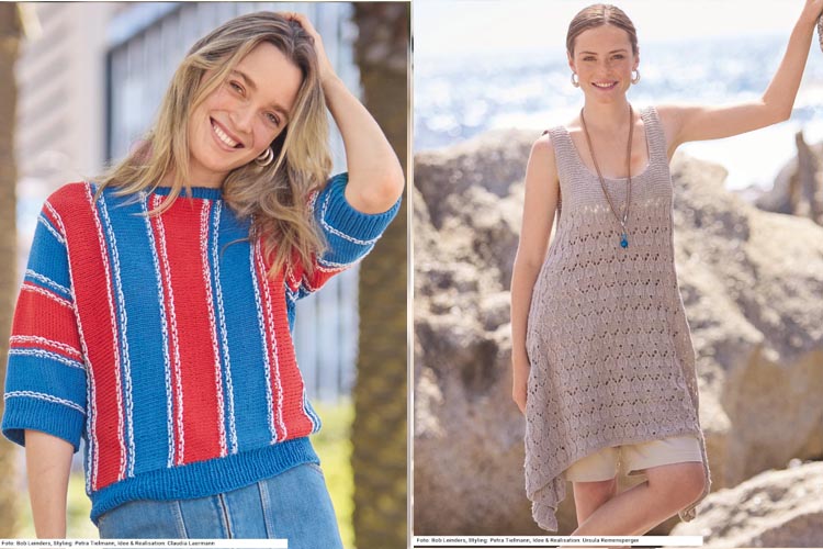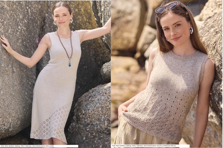 В новом выпуске журнала по вязанию Sabrina 6/2026 есть и раздел со светлыми базовыми моделями. Это спокойные летние модели, в которых акцент сделан на интересных конструктивных решениях и мягкой палитре.