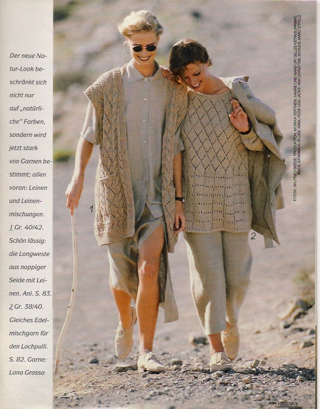 Жилет с ажурными переплетениями и мелкими косичками идеально вписывается в тренд на многослойность и возвращение жилетов в уличную моду. Модель из Verena 1994 года можно освежить, сделав проймы чуть глубже, добавив свободы по груди и поиграв с длиной — от классической до укороченной для сочетания с платьями и рубашками с объёмными рукавами. В 2026 году такой жилет будет работать как стильное дополнение к рубашкам, футболкам и даже тонким водолазкам, превращая любой базовый образ в продуманный.