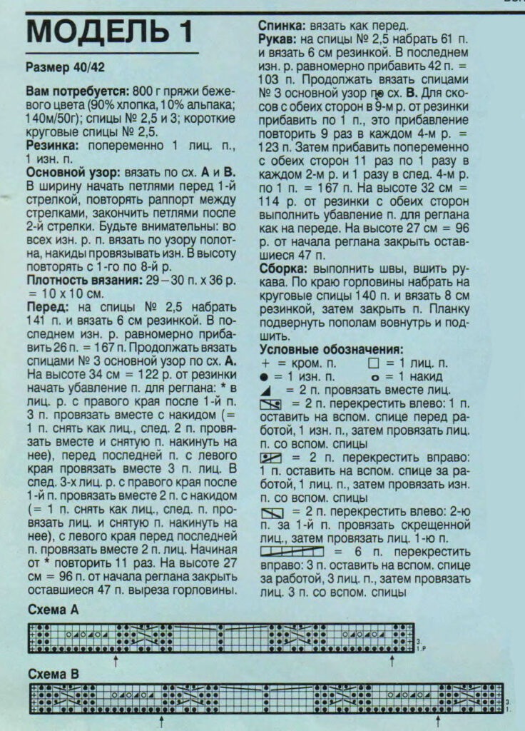 Модель 1. Рельефный реглан с косами