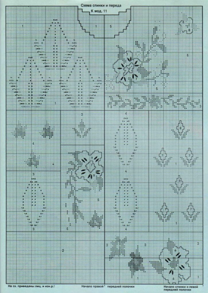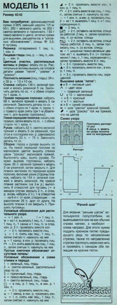 - Стрелками на схемах обозначены раппорты узоров.