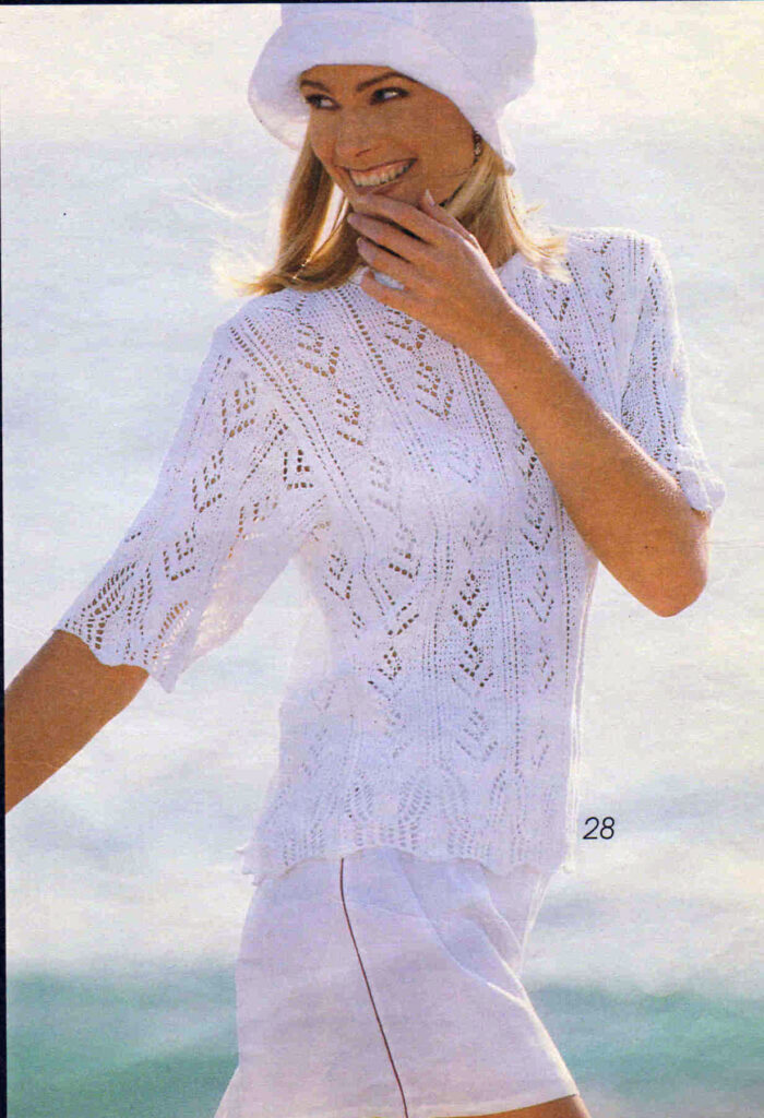 Модель 9. Белый пуловер с ажуром и волнистым краем