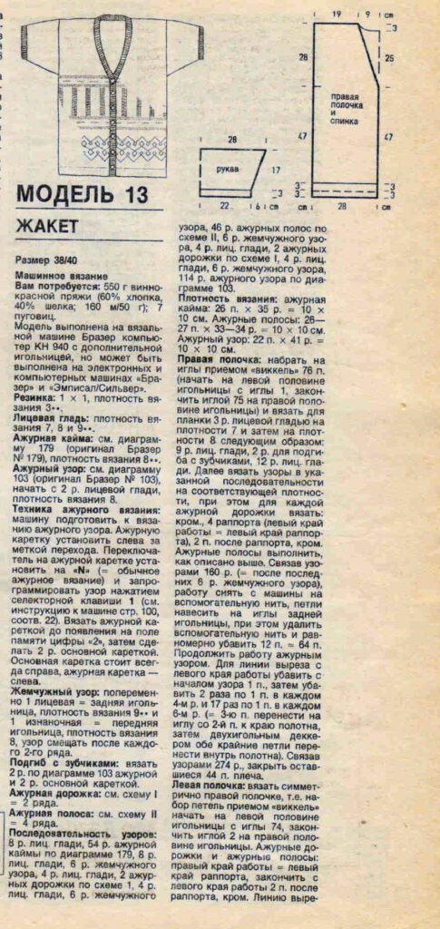 Плотность вязания: 20 п. и 28 р. = 10 х 10 см.